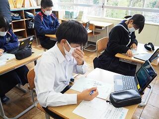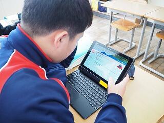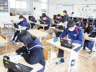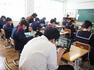 本年度、都於郡中学校ではICT機器を活用した授業等の研究に取り組んでいます。