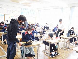 昨日、3年生の多くが私立高校入試でした。今日は、私立入試を終えて安堵の表情の3年生。やはり3年生の姿が学校の中にあると、落ち着きますね。