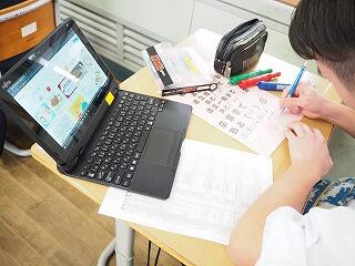 それぞれタブレットで「ロイロノート」内のワークシートで学習作業を進めます。
