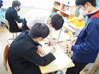 学習グループで、意見を伝え合い、思考を深めていきます。