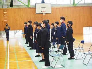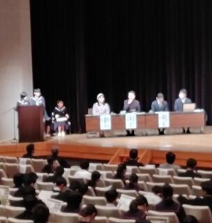 「立派な立志式でした。創作四字熟語は、それぞれに思いの込められたものなので、それに向かって頑張っていってほしいと思います。2年生の発表態度も、全校生徒の聴く態度も、とてもよかったです。都於郡中の良さが輝いていた式でした。」