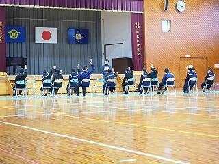 6校時は発表の練習。実際に体育館で、式の流れに沿っての練習に入りました。