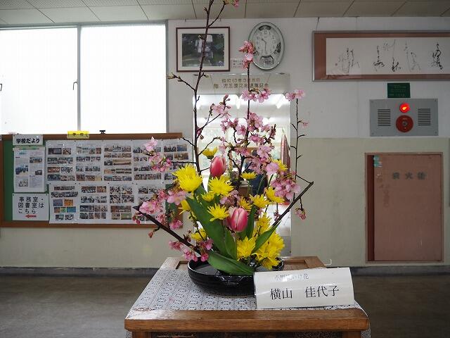 毎月、学校の玄関に彩を添えてくださっているのは、地域の華道教室の先生です。