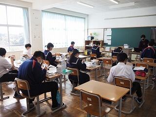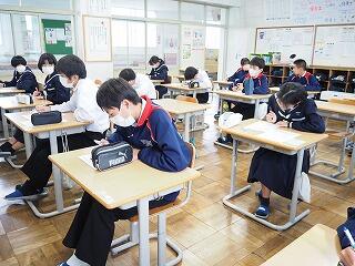 3年生は、今日、それぞれの希望する県立高校の推薦入試に臨んでいます。私立専願で決まった人たちは今日の午前中は学習です。頑張っている仲間に「頑張れ!3年生のみんな!」と、『念』じました