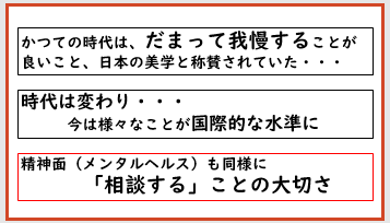 「今日は『心のくせ』について学びました。自分に当てはまることが多くて、びっくりしました。自分は大人になりかけていると思いました。」