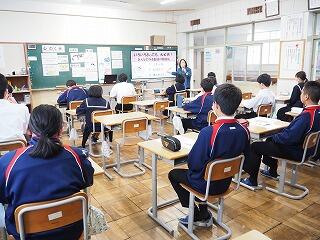 今日は、西都市内の中学1年生が一堂に会しての学習がありました。