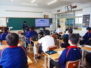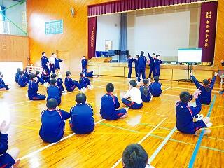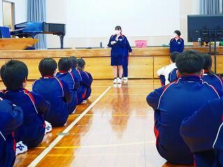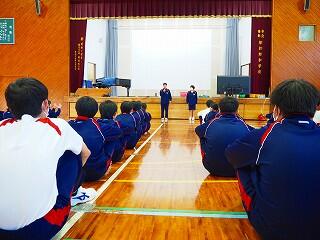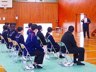 「心の持ち方で人生が変わっていきます。4月からは新1年生が入ってきます。みなさんは、学校をリードしていく立場になります。前向きに心を変えて、努力していってください。あと2年で都於郡中は終わり、西都中になります。都於郡中学校を大事に思って、誇りに思って、頑張っていってほしいと思います。」