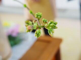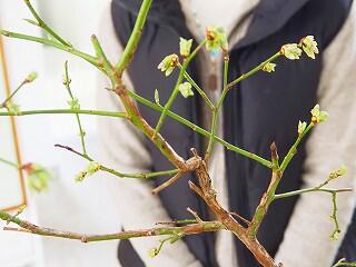 花の後ろに挿してある枝が『ブルーベリー』の木の枝で、先にはかわいい蕾がついていました。
