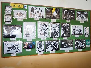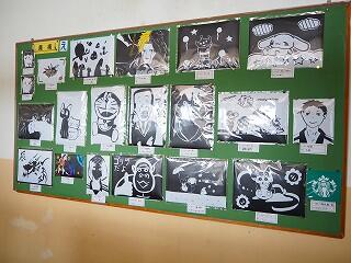 2年生は、切るところ、残すところを考えながら、細かい作業を丁寧に取り組んだ切り絵の作品です。
