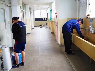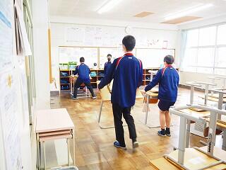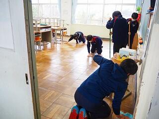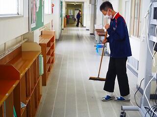 3年生が県立一般入試の日。今日の清掃は、いつもより少ない人数での清掃です。
