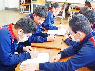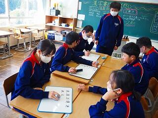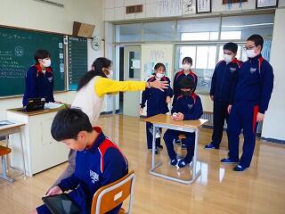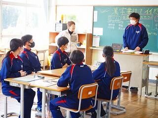 「今回の送別行事は、とても楽しく充実した時間になりました。全校生徒みんなが楽しめるためにはどういう企画にした方がよいかと悩みながら、たくさん考えていました。送別行事を楽しんでもらうために、朝の時間、休み時間、昼休み、放課後と、とても多くの時間をかけて検討してくれました。当日も各ブースのキャストとしてみんなを盛り上げ、一緒になって楽しんでいる姿が印象的でした。誰かのために精一杯、悩み、考え、準備をし、最後までやりとげました。とても素晴らしく、さらに成長していました。これからの都於郡中がまた一段と楽しみになりました。」