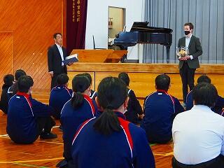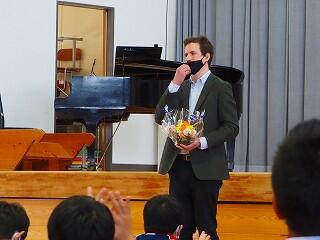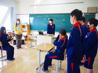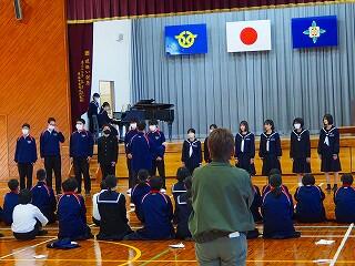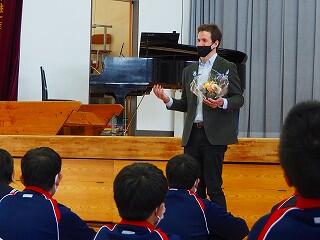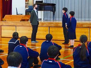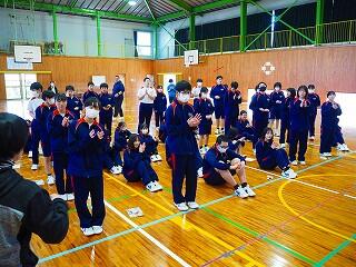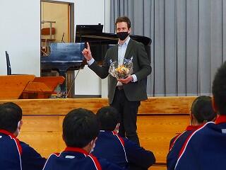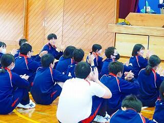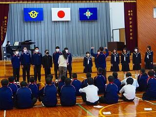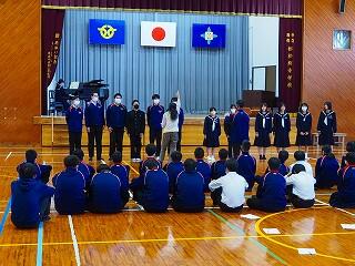 「最後の学校が、この都於郡中で本当に良かった。みなさんに出会えて本当に良かった。うれしかった。ありがとう!これからも自信をもって、いろんなチャレンジを続けて経験を重ねていってほしいと思います。また新しい校長先生のもと、みなさんで力を合わせて頑張っていってください。応援しています。