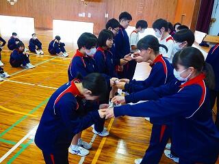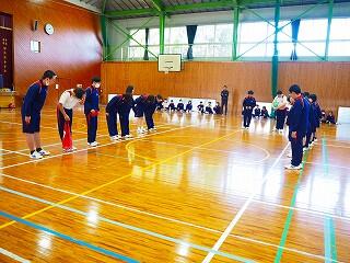 「今日が最後の体育の授業でした。この1年間、体育の授業を通して、いろんな人と関わりながら楽しく授業をしてきました。来年度も、楽しみながら体育の授業をしていきましょう!」