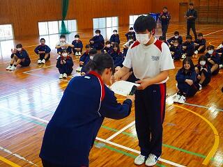午前の送別行事、午後のクラスマッチの、それぞれの表彰がありました。