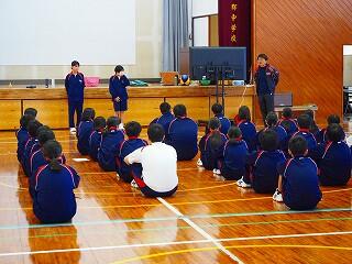 1学期の避難訓練の基本をもとに、2学期と3学期は日時は知らせずに訓練を行い、自分の命を守る行動の訓練を行っています。終了後は各学級で事後指導がありました。