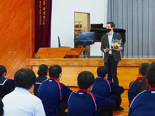 「この1年間、都於郡中の皆さんと一緒に過ごした時間は忘れられません。都於郡中は、とても素晴らしい生徒たちでした。他の言語を学ぶということは難しいことだと分かっていますが、学び続けることで徐々に上達していくので、続けていってください。You Can Do It !」