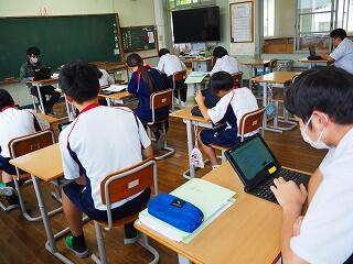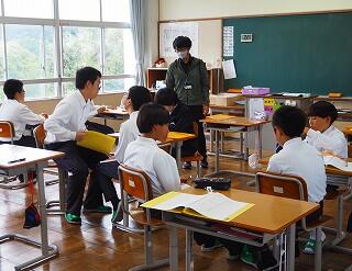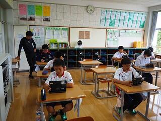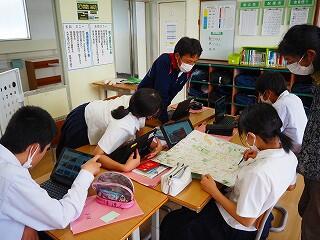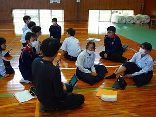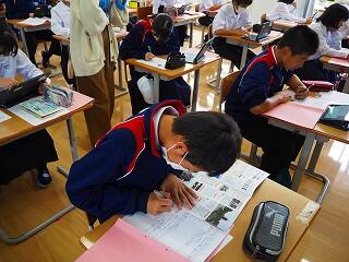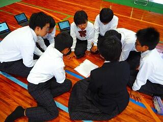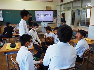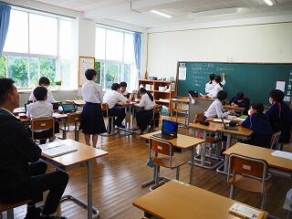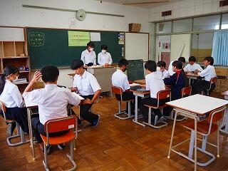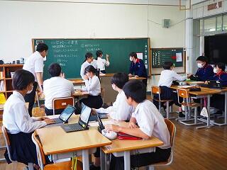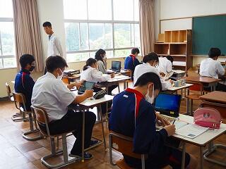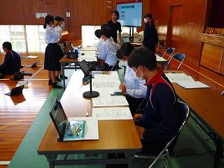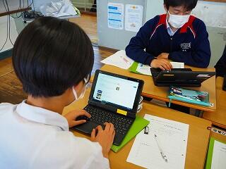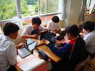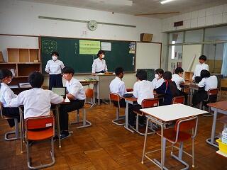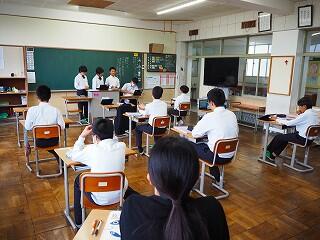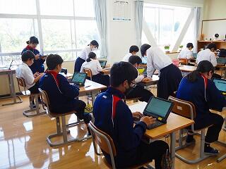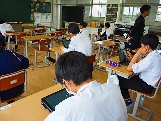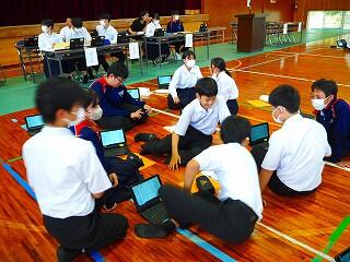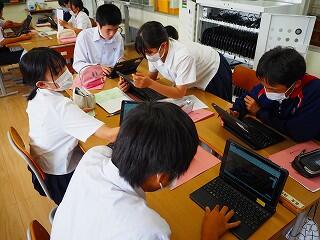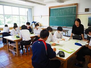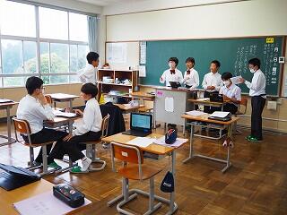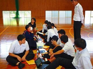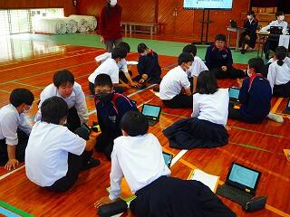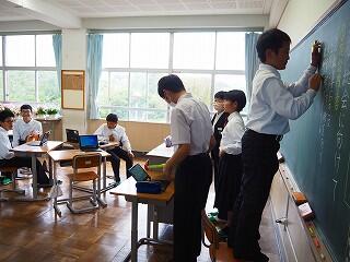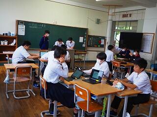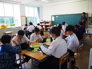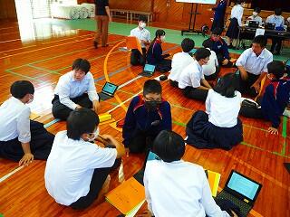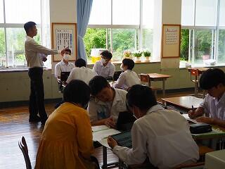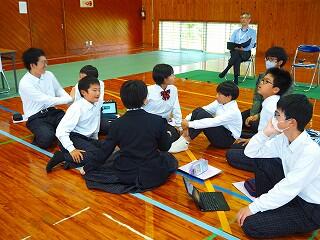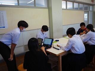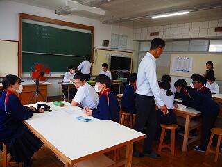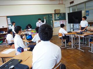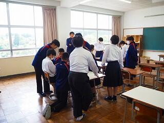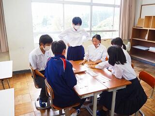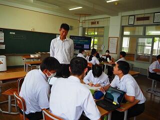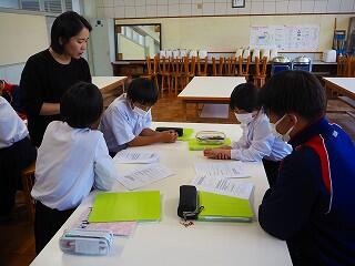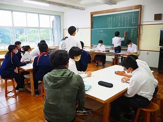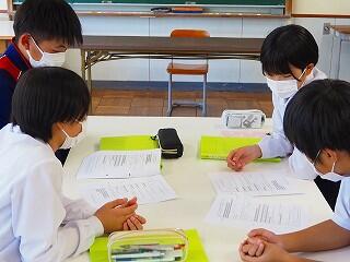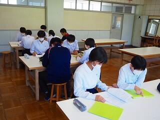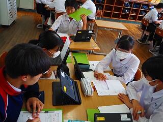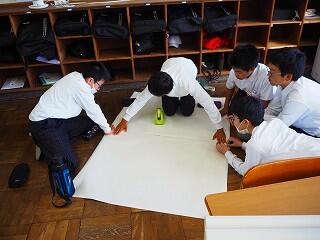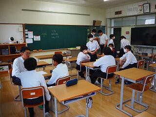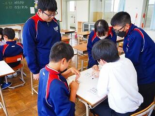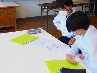 2年生は修学旅行前で、いろんな班が決まってきている時期、せっかくなので今日は『自主研修の班』で作業に取り組むことになったようです。班長を中心に自分たちで考え、活動します。