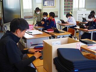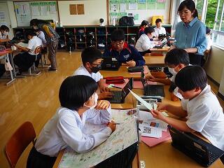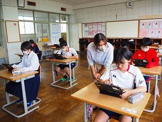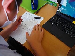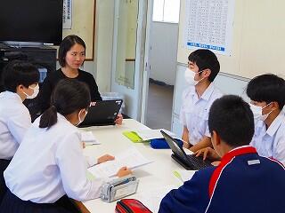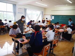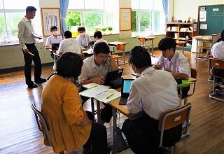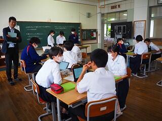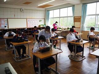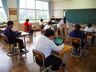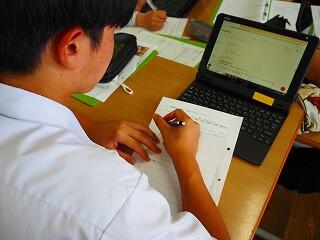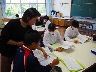 どの教科の場所でも集中して取り組んでおり、先生に質問したり、隣の人と静かに確認したりしていました。