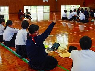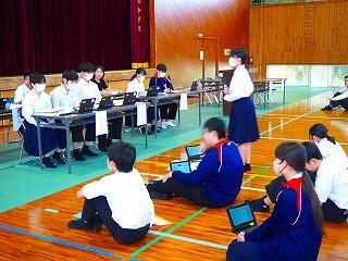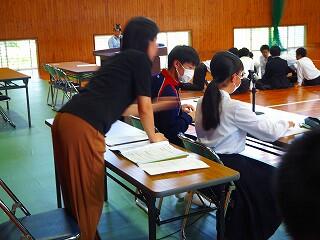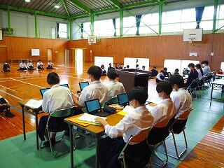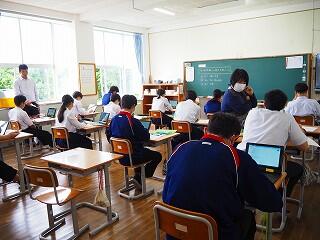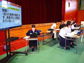 今日の各学級での話し合いをスムーズに進めるために、生徒会執行部の人たちが進行のサポートに入っています。