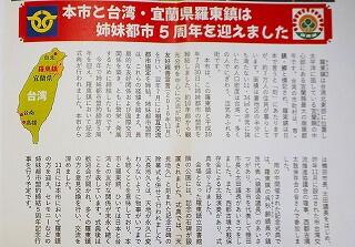 「西都市は、平成30年7月に台湾宜蘭県(いらん県)羅東鎮(らとうちん)という所と、姉妹都市を結び観光分野を中心に交流が始まり、友好親善宣言を行いました。長期的な友好関係および国際交流関係を築いてきています。