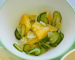 今日の給食の副菜は「パインサラダ」でした。使われているパインは、今年の4月に発生した台湾地震の支援の一環として、西都市から市内の小中学校給食に提供されました。