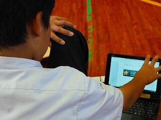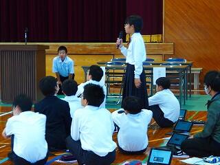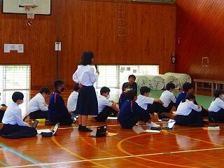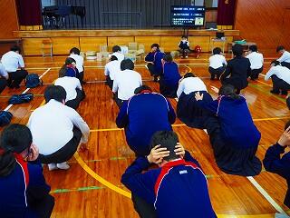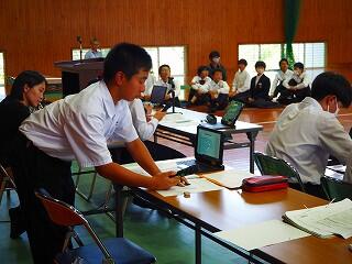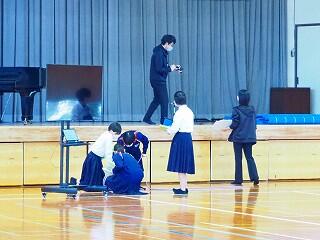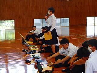 明日は、いよいよ生徒総会です。生徒会役員の皆さんが昼休み時間に集まて、リハーサルを行っていました。