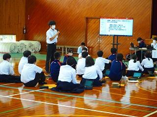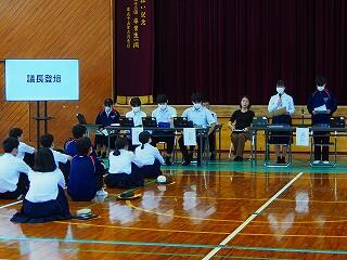 生活美化副委員長の話「みんなで協力し合って、一生懸命取り組んでくれたので時間内に終わることができました。これから、水やり活動などを頑張っていきましょう!」