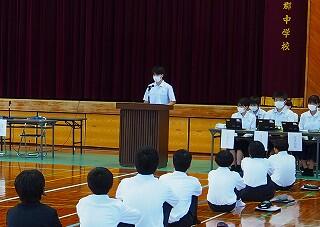 「いろいろなことがあっても、みんなで乗り越えてきました。『都於郡中』として4つの部活動が大会に出場できるのは、最後になるのかもしれません。だからこそ、3年間の集大成として完全燃焼し、『都於郡中』の名を刻めるように、最後まで全力で戦い抜くことを誓います」