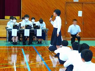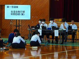 先だっての生徒総会で、各専門委員会の年間目標、重点目標などが承認されました。
