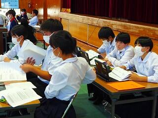 17日(金)の生徒総会に向けて、生徒会執行部、各全校専門委員長副委員長の皆さんは、昼休み時間に集まって作業を重ねています。