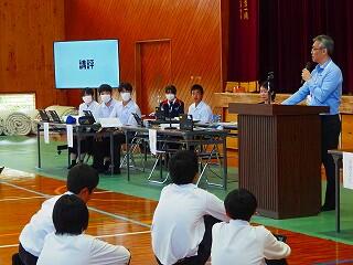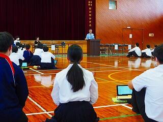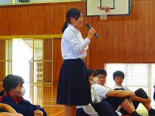 「いよいよ今週の金曜日は、生徒総会です。全校生徒が『チャレンジしたくなるような学校』づくりを目指して、生徒会の人たちも、何回も昼休み時間に打ち合わせを重ねてきています。当日、活発な意見交換がなされることを期待しています。」