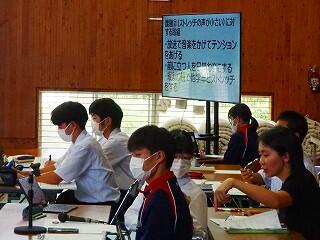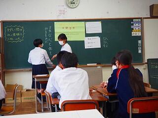 いろいろな視点で考えを出し合ったり、その理由を聞いて納得し合ったりしながら、学級の意見としてまとめていく作業は、話し合い活動の難しいけど面白いところでもあるようですね。どの学級でも活発に意見を出し合っていました。司会進行担当や記録担当の人たちも、一つ一つを受けとめながらしっかりと進めていました。