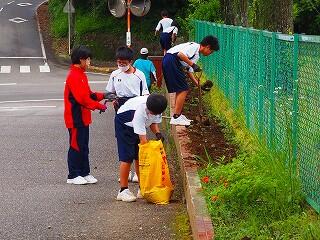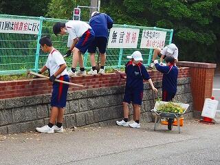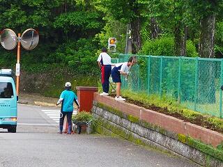 毎年、定期的に校舎周りや自転車小屋、運動場などの草をきれいに刈り取り、学校環境の整備をしていただいています。今回は、先週から3名の方が来て作業をしてくださっています。