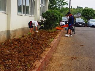 1年生と2年生が技術の授業の中で、「事前作業」として花壇整備をしてくれていました。おかげで、花植え作業がとてもスムーズに進められています。
