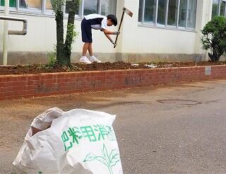 来週、全校で行う美化作業があります。それをスムーズに行うための事前作業として、2年生が花壇整備活動をしました。