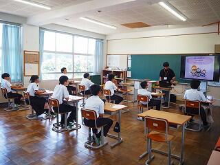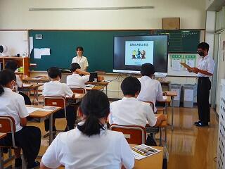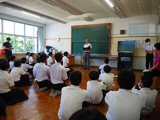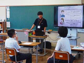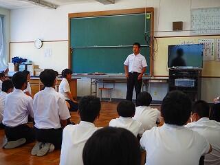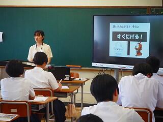 今年も西都市警察署と連携して、スクールサポーターの方に来ていただいて研修を行いました。