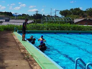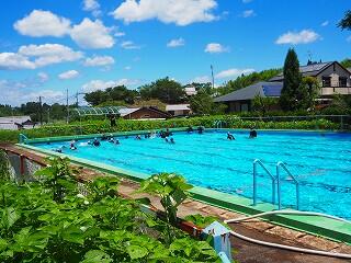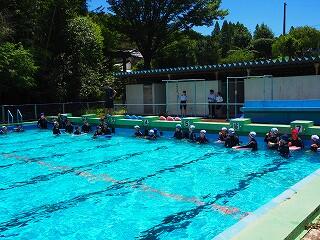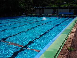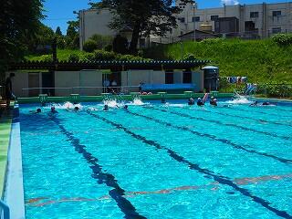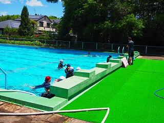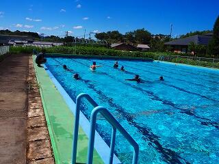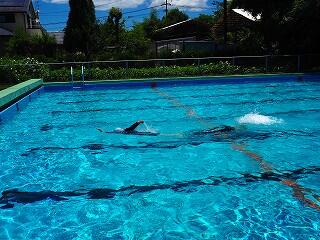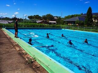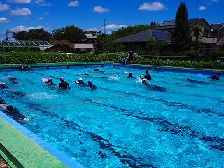 気持ちよく澄み切った青空のもと、広々とした環境で伸び伸びと充実した水泳学習が行われています。