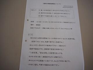 生徒会執行部と保体給食委員長が協力して考え、『昼休み時間の被服室の開放』についてお知らせがありました。