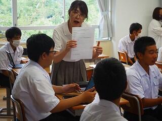 「3人とも真面目にコツコツと練習に取り組んでいます。弁論にチャレンジする人は、自分の考えや意見を英語でスピーチします。暗唱にチャレンジする人は、ゼスチャーを交えて自分なりの表現を工夫しています。3人で励まし合って練習を続けているところです。毎回、練習の最後には振り返りを行っていますが、プラス思考でとらえたり、互いの良さを見つけて伝えたりなどしていて、私もとても良い刺激になっています!」