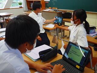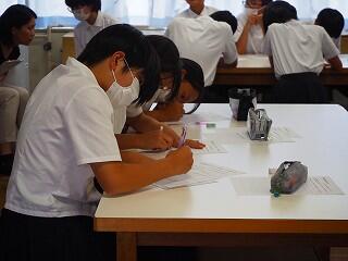夏休みに入りましたが、3年生は探究活動の続きで、班の計画に沿って自分たちで取り組みを進めています。