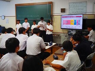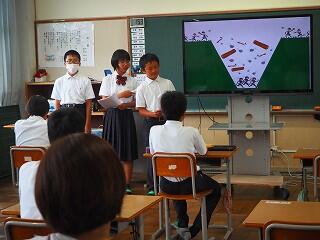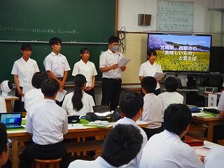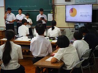 3年生が、1学期取り組んできた探究活動の発表会です。1,2年生も参加し、先輩たちの取組やプレゼンのまとめ方、発表の仕方などを見て聞いて学びます。