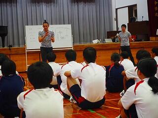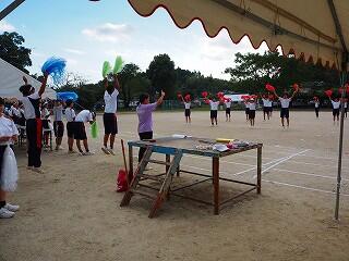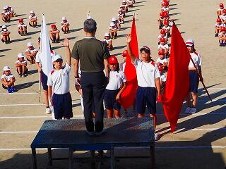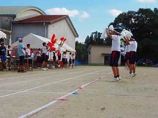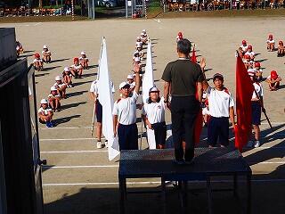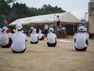 「最初の頃は声も小さく、行動もまだまだだったけど、この前の予行練習の時は声も大きくなっていて、行動も素早くできるようになっていました。明日の運動会では、もっと大きな声で、そして一人一人が自分の役割をしっかり行い、最高の運動会にしましょう!」