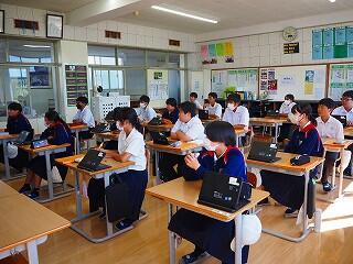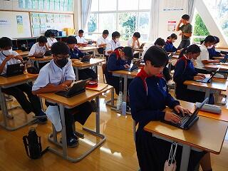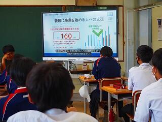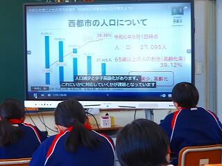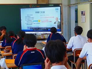 西都市内の小学6年生、中学2年生、妻高校1年生が、西都市長のプレゼン動画を視聴して、自分の考えや意見をまとめます。