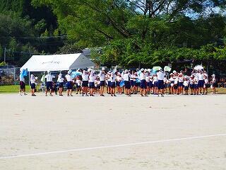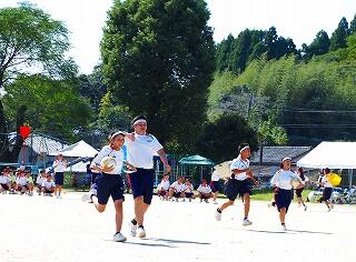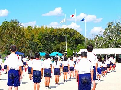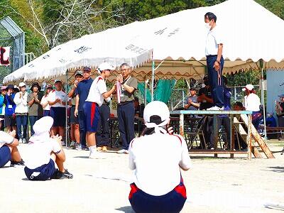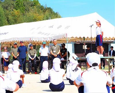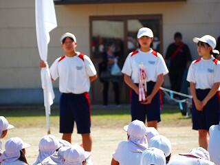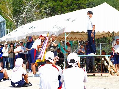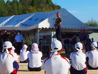 「絶好の運動会日和の中、第12回小中合同運動会が盛会に終わりとてもうれしく思います。都於郡地区の小学生と中学生が心を一つにして競技や応援に取り組む姿に感動しました。運動会という一つの学校行事を通して感じた自分の頑張りや成長を今後の生活に生かして成長した姿を見せてくれることを期待します。