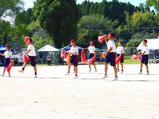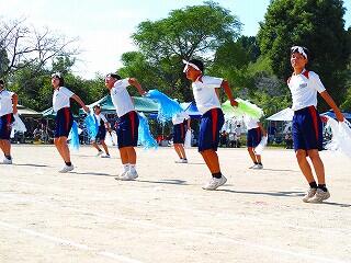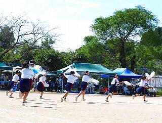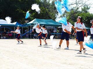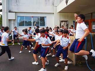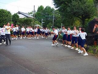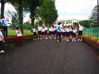 中学校の運動場は状態が良くないので、今日、再び、小学校の運動場をお借りして、ダンスの練習を行いました。
