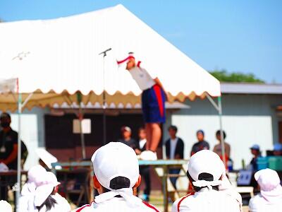 「小、中ともに全力で競技も応援も頑張っていました。準備も一人一人がどうすれば早く準備が整うのかなど考え、テキパキと行動することができました。課題は、まだ自分から考えて行動していない人もいるので、これからはそこをみんなが考えて行動できるようにしていきたいです。本番では全員が全力で楽しめる運動会にしたいです!」