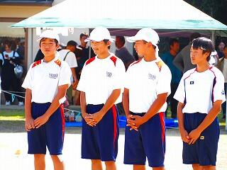 また、来賓の皆様をはじめ、保護者や地域の皆様方も温かいご声援をありがとうございました。皆様に支えられながら、今後も都於郡地区の子供たちを大切に指導してまいりますので、今後ともご支援とご協力をよろしくお願いいたします。 都於郡中学校長 渡邊常介」