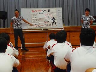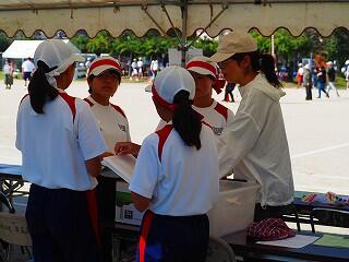 体育主任の先生から、リレーの注意することなどの説明を受け、しっかり確認します。
