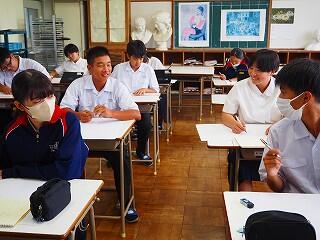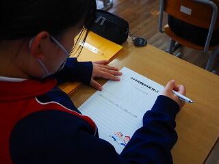 「今日の学習で、橋田市長さんも西都市のことを考えて行動していることがよくわかりました。人口が約2万人位だったのが、2050年頃には1万人位になってしまうかもしれないということに驚きました。こういう現状を知った上で、自分たちが西都の良さを伝えられるように考えて行動していくことが大切だと学びました。」