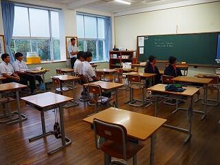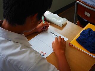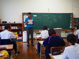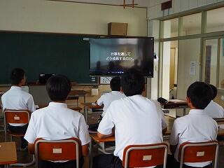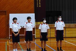 生徒会担当の先生から「生徒会役員の新旧交代がありました。それには、選挙管理委員会の5名の皆さんの支えがあります。表にはなかなか見えてこないところで、大事な仕事を陰でずっと長い期間、いろいろな行事があっている期間も責任もって頑張ってくれていました。本当にありがたいことです。みなさんで、感謝の気持ちを伝えたいと思います。」全員で、ありがとうの気持ちの拍手を送りましたいろいろな人がいろいろな所で頑張ってくれているから、学校生活が安心して、円滑に進められます。そういう部分を大事にしたいですね。ありがとうございます。